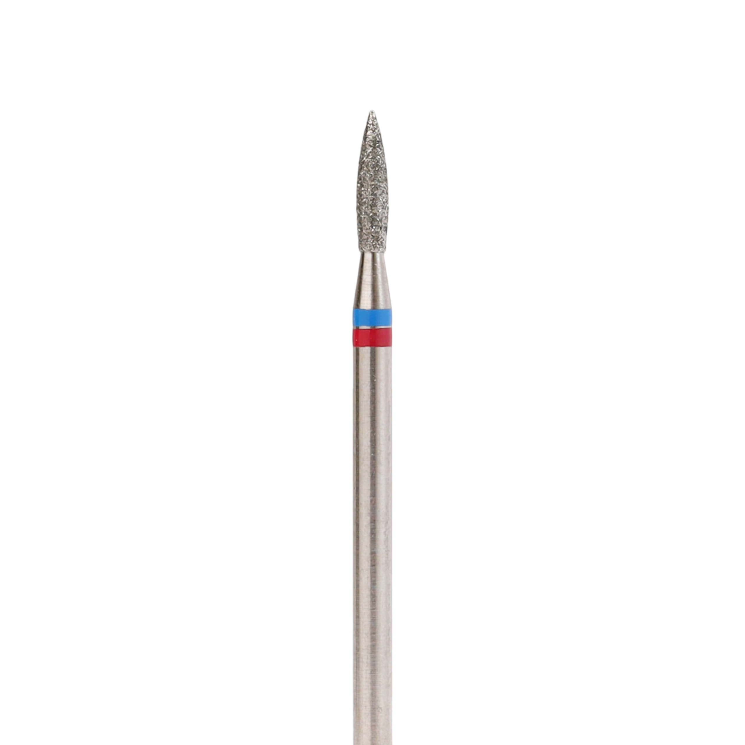 Fresa de diamante Llama con punta grano roja-azul diámetro 21 ideal para levantar la cutícula, limpiar las zonas laterales y abrir el bolsillo de cuticula con precisión. Nuevo abrasivo bicolor suave-media sirve para cualquier tipo de piel, perfecta para manicura rusa y combinada. Durabilidad estimada: de 15 a 20 servicios según el uso y cuidado