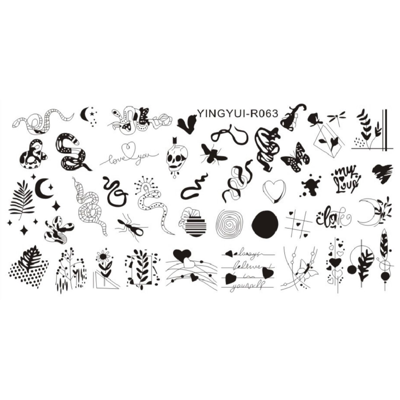 Placa para stamping R063 – Deja volar tu imaginación Diseños modernos y versátiles para personalizar tus uñas. Añade un toque de creatividad a tus manicuras y luce uñas impresionantes.