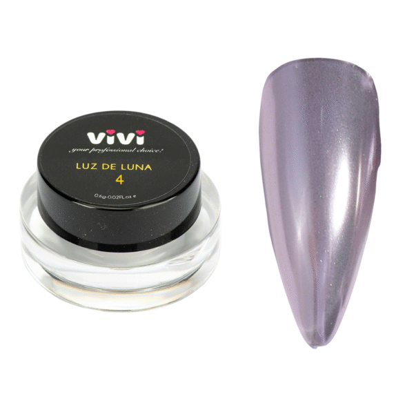 Polvo decorativo con efecto espejo Luz de LUNA 4 es un polvo decorativo ultrafino que aporta a las uñas un brillo metálico plateado intenso y una superficie perfectamente reflejante. Permite crear un acabado cromado uniforme, elegante y de alto impacto. Ideal para manicuras modernas, diseños glam y nail art creativo. Compatible con gel, semipermanente y PolyGel. Volume 0,6 g. Pack incluye el aplicador.