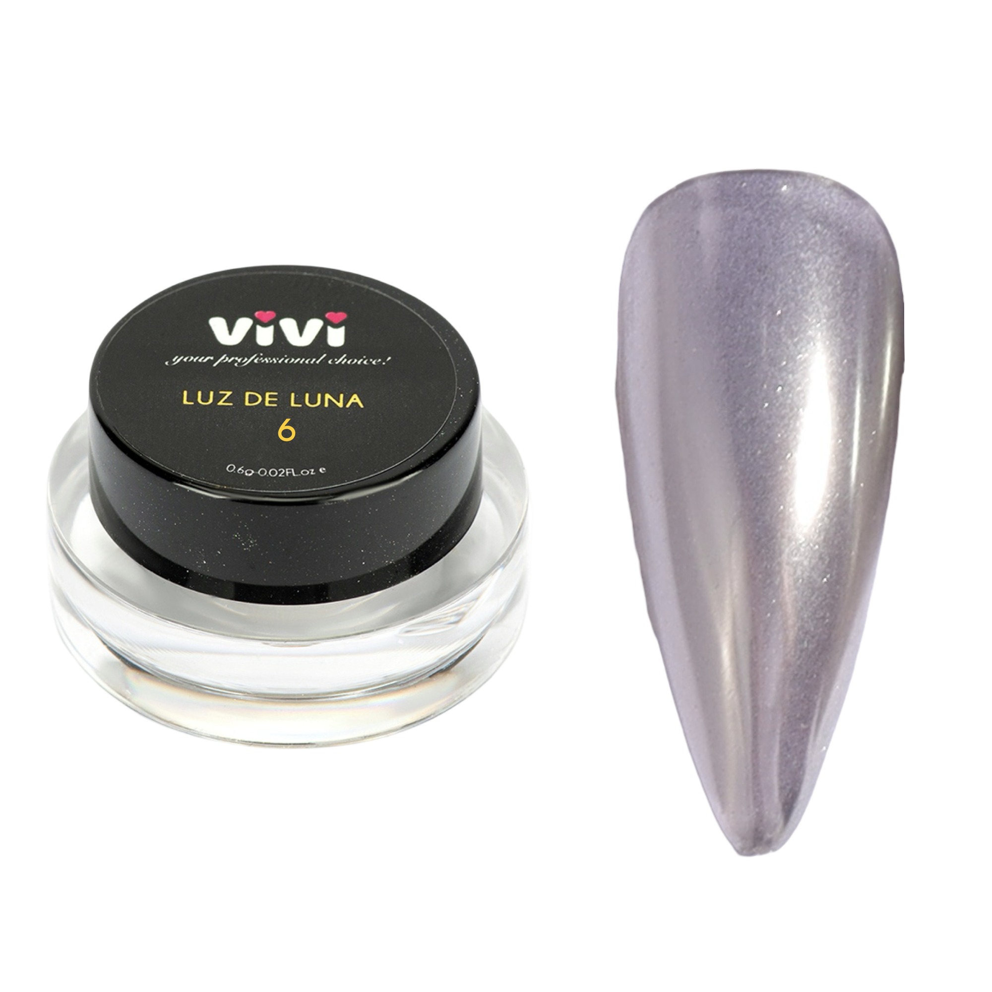 Polvo decorativo con efecto espejo Luz de LUNA 6 es un polvo decorativo ultrafino que aporta a las uñas un brillo metálico plateado intenso y una superficie perfectamente reflejante. Permite crear un acabado cromado uniforme, elegante y de alto impacto. Ideal para manicuras modernas, diseños glam y nail art creativo. Compatible con gel, semipermanente y PolyGel. Volume 0,6 g. Pack incluye el aplicador.